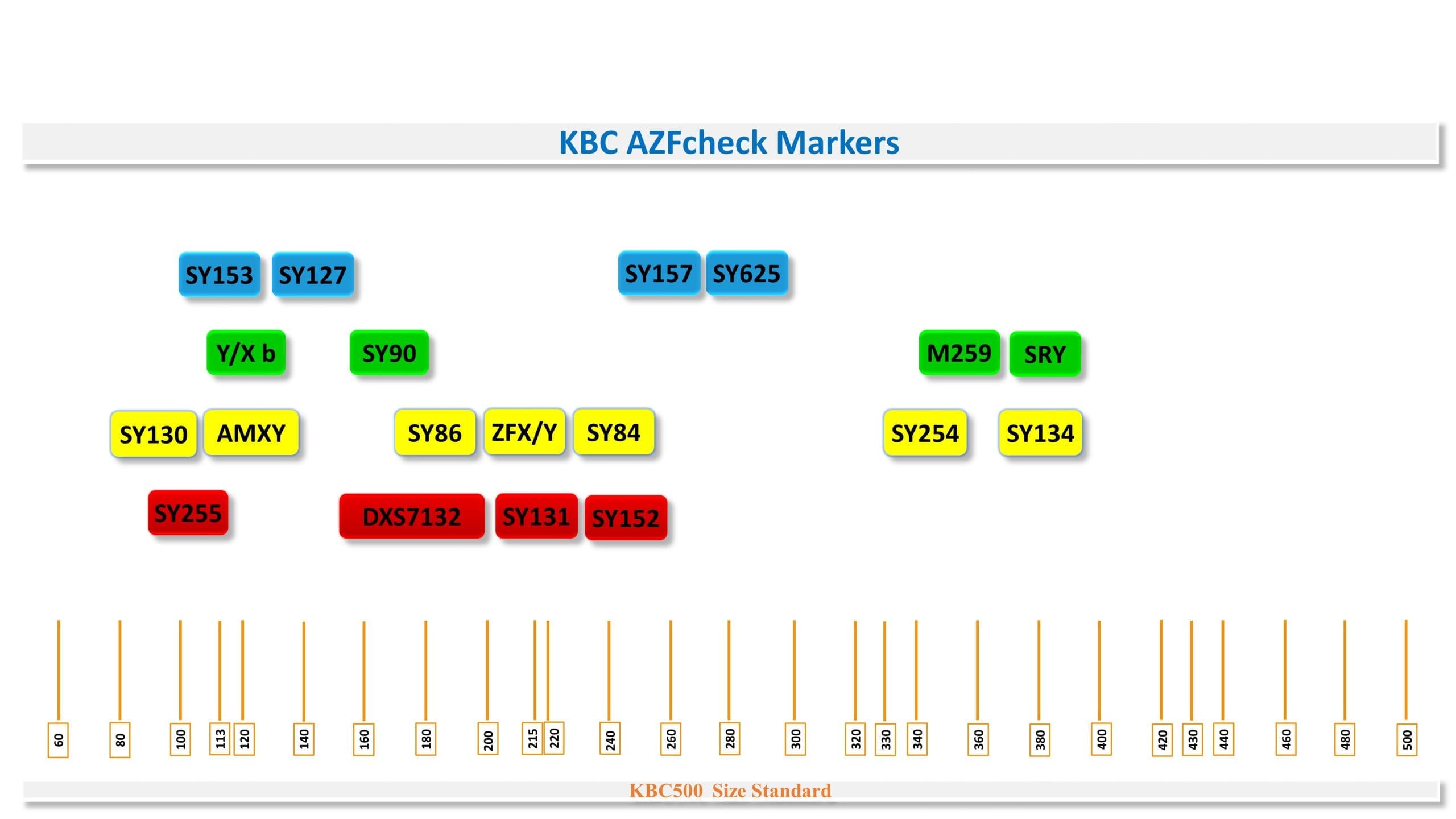This diagnostic kit is based on 19 markers, including 16 STS markers (short DNA sequences of 300 to 500 base pairs that occur once in the genome), 2 SD markers (sex determination) and one STR marker (short repetitive sequences of 3 to 7 base pair) with high heterozygosity on the AZF gene.