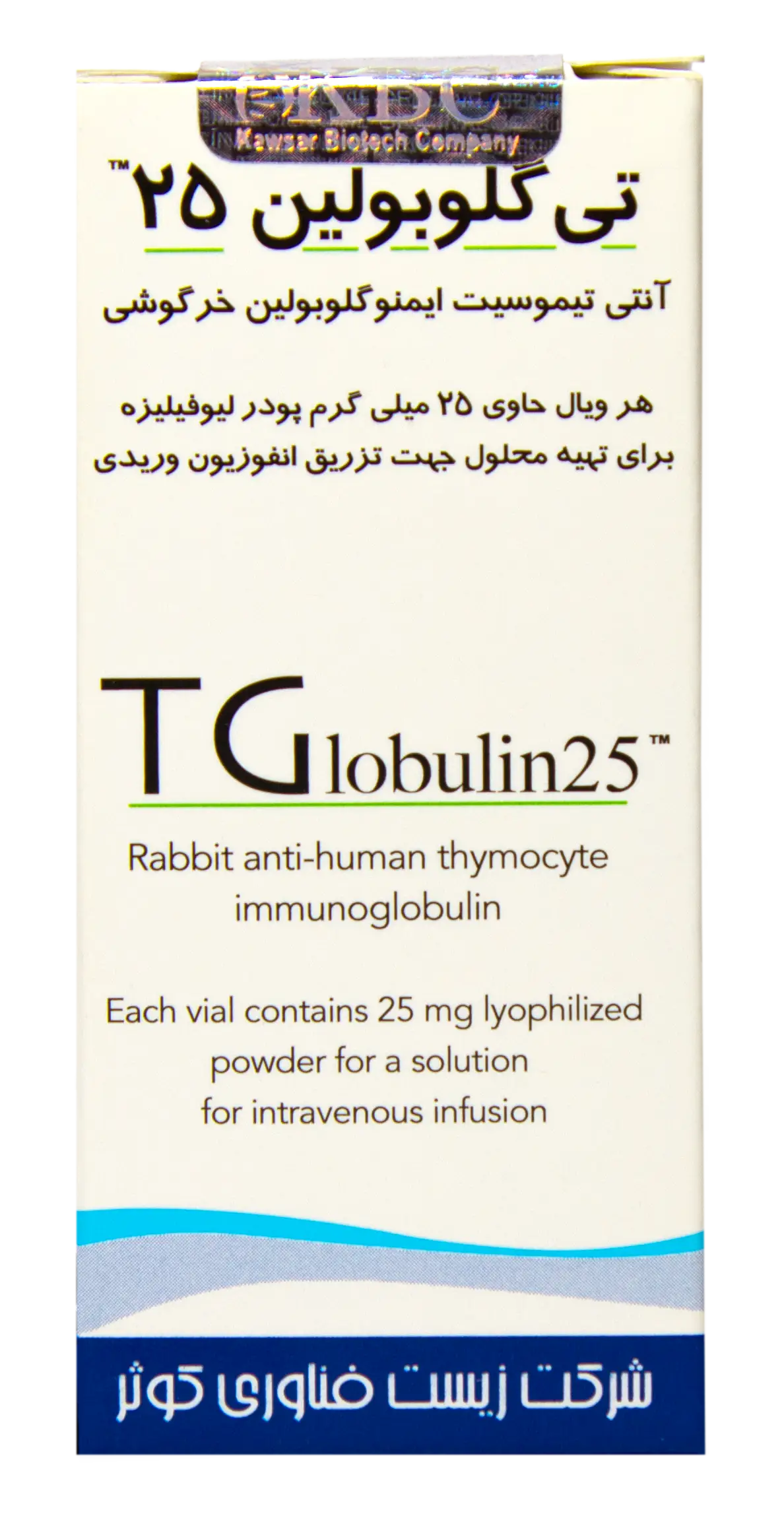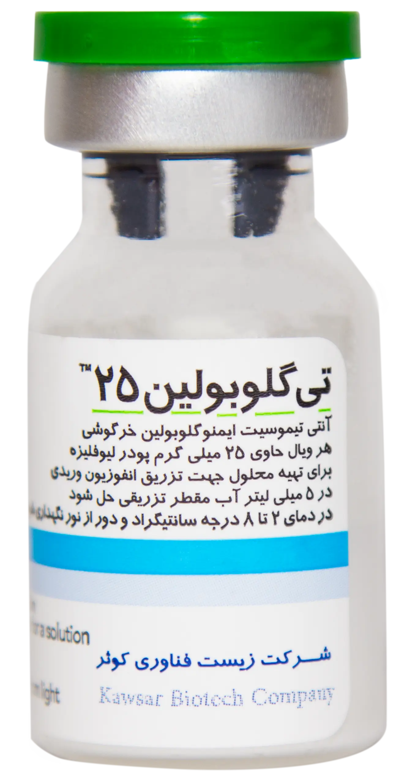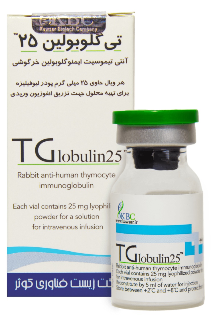 تیگلوبولین25 (آنتی تیموسیت ایمنوگلوبولین خرگوشی) برای پیشگیری و درمان رد حاد پیوند کلیه در بیماران دریافت کننده پیوند کلیه کاربرد دارد.تیگلوبولین25 (تولید شده توسط شرکت زیست فناوری کوثر) یک فرآورده ایمونوگلوبولین ضد تیموسیت انسانی است که از آنتی بادی های پلی کلونال مشتق شده از خرگوش ساخته شده است.